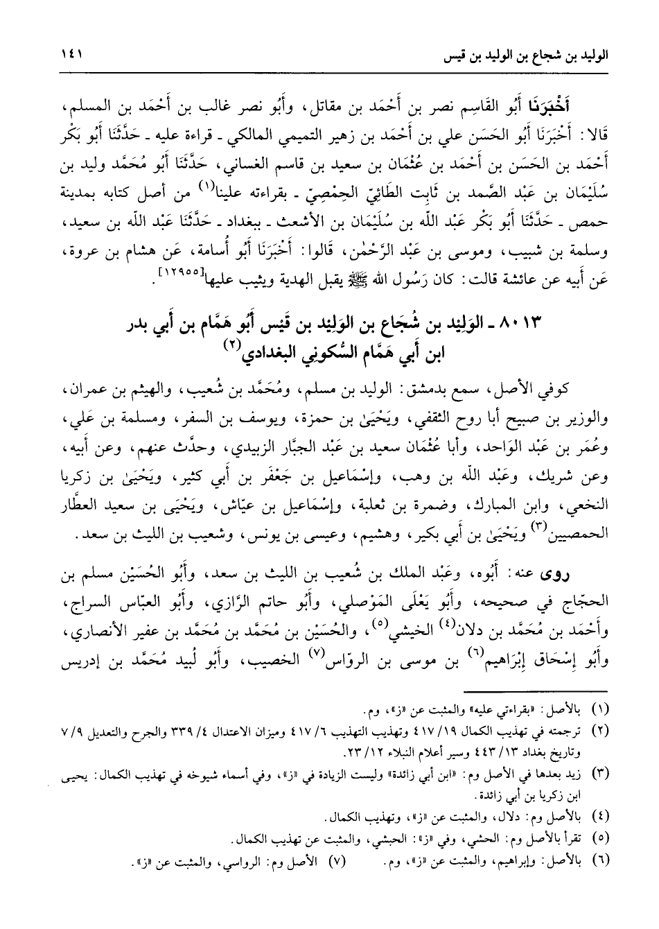 (2) ترجمته في تهذيب الكمال 19 / 417 وتهذيب التهذيب 4 / 417 وميزان الاعتدال 4 / 339 والجرح والتعديل 9 / 7 وتاريخ بغداد 13 / 443 وسير أعلام النبلاء 12 / 23