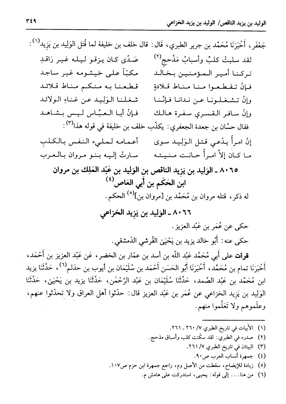 8065 - الوليد بن يزيد الناقص بن الوليد بن عبد الملك بن مروان ابن لحكم بن أبي العاص (4) له ذكر قتله مروان بن محمد بن مروان بن (5) الحكم