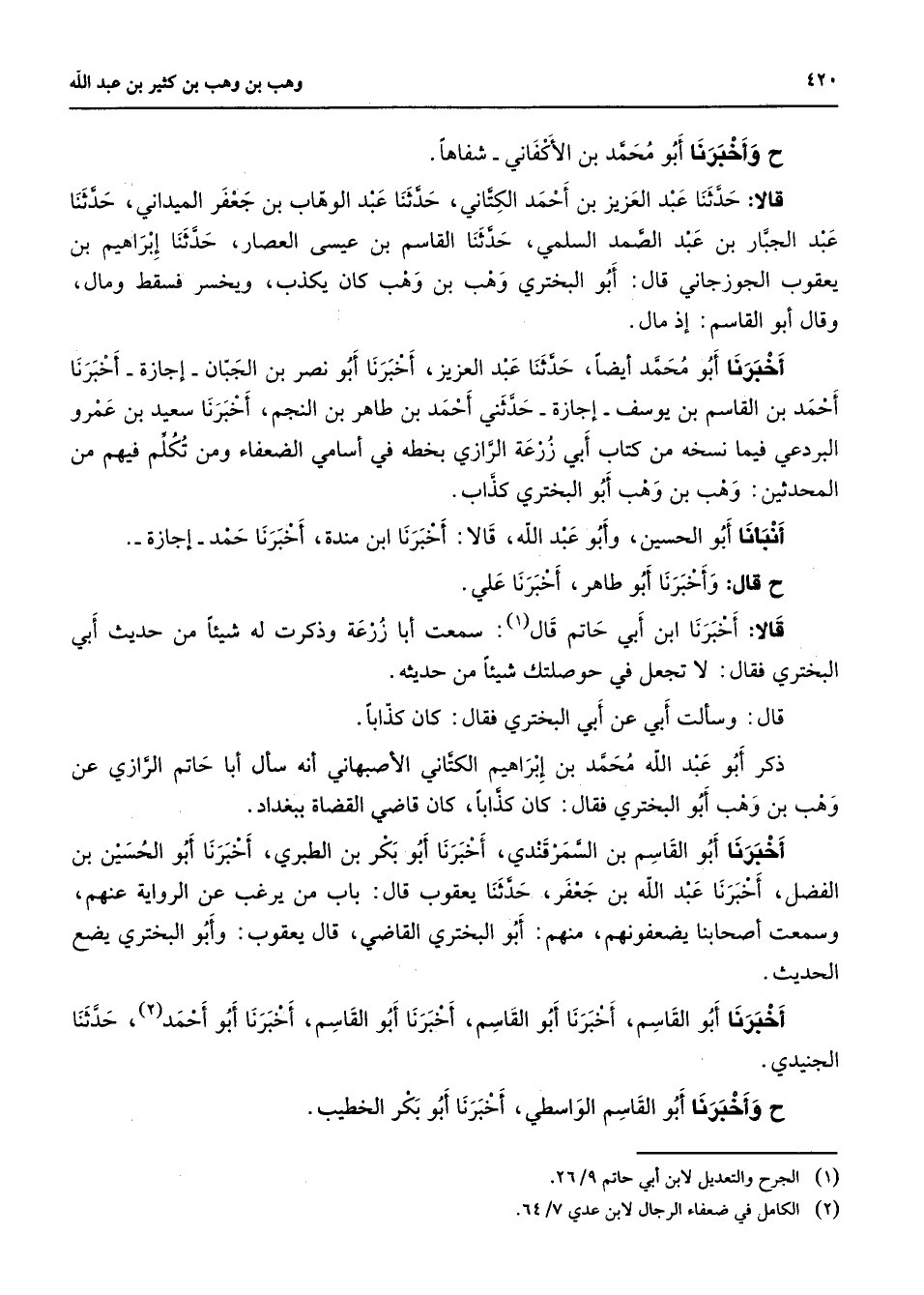 (1) الجرح والتعديل لابن أبي حاتم 9 / 26