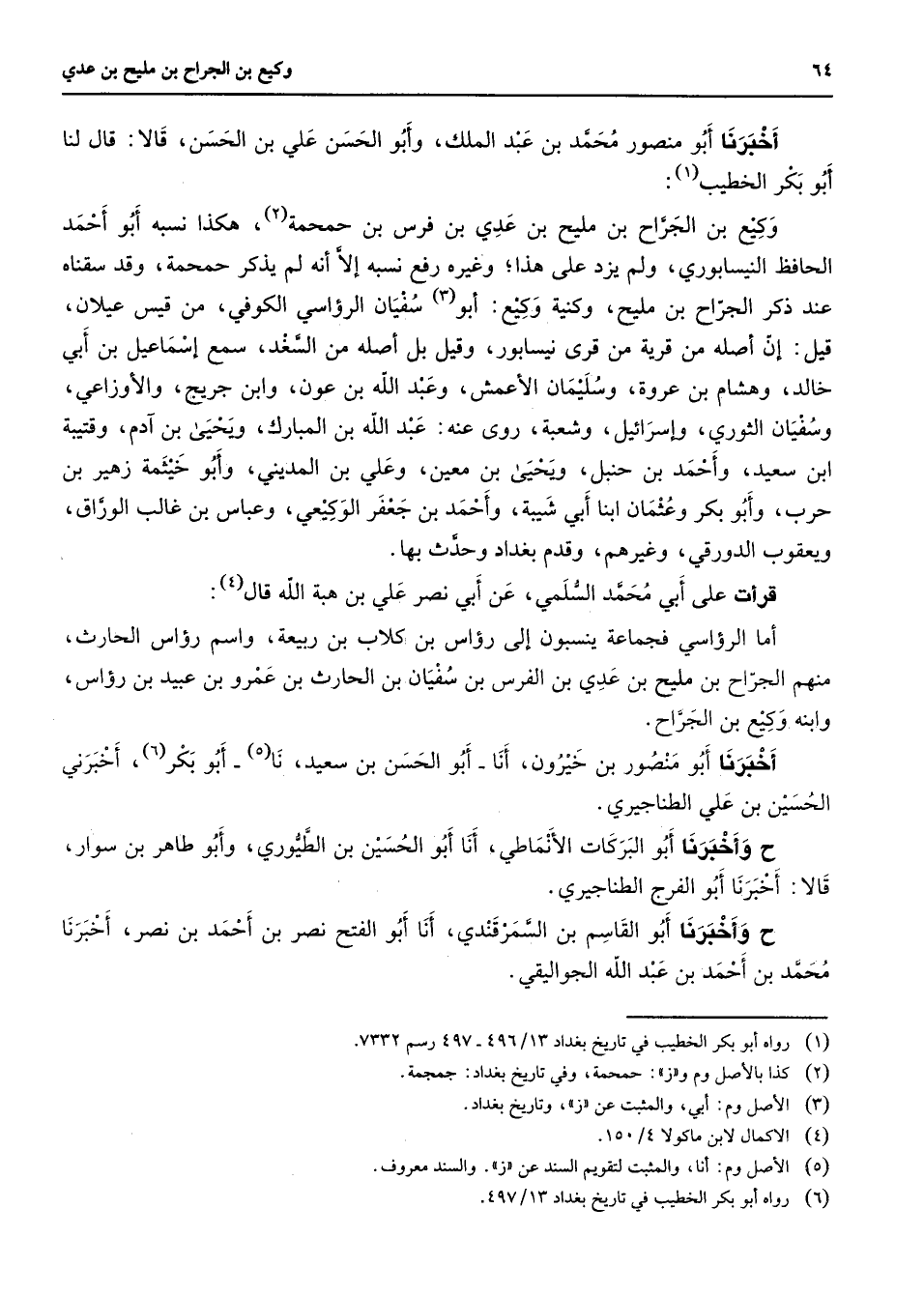 (6) رواه أبو بكر الخطيب في تاريخ بغداد 13 / 497