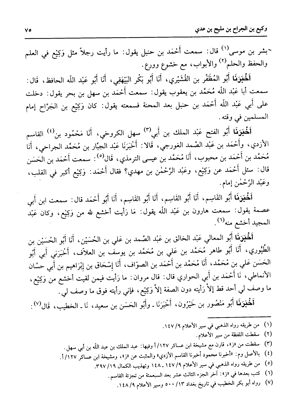 (7) رواه أبو بكر الخطيب في تاريخ بغداد 13 / 500 وسير الأعلام 9 / 148