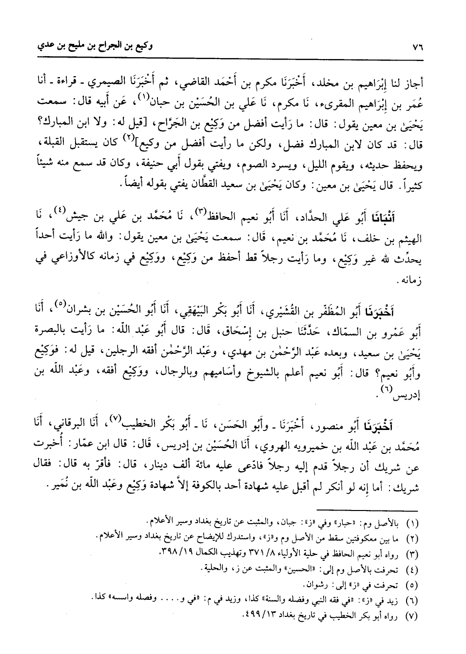 (7) رواه أبو بكر الخطيب في تاريخ بغداد 13 / 499