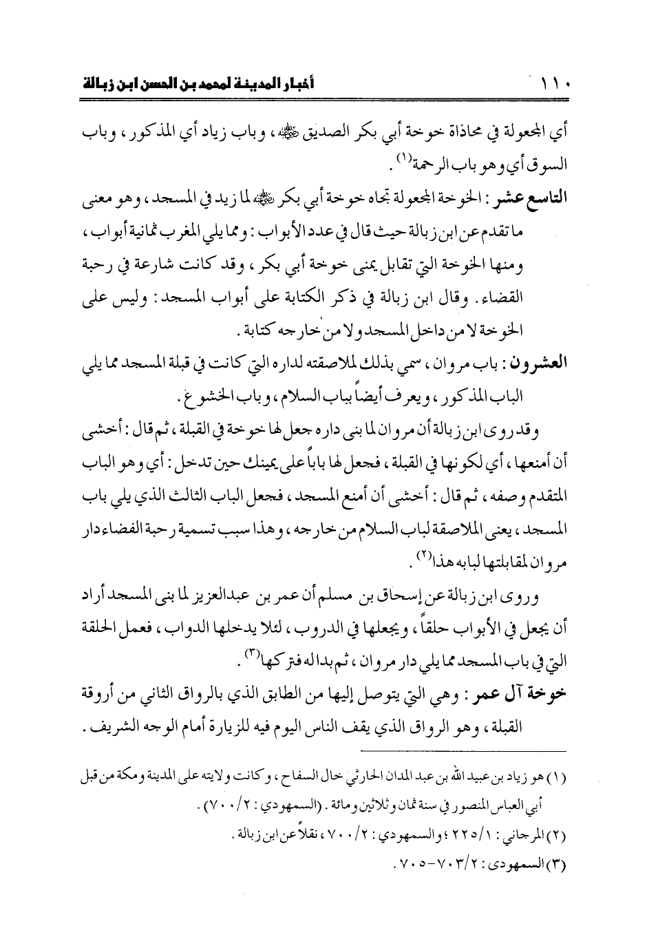 (2) المرجاني: 1/ 225؛ والسمهودي: 2/ 700، نقلاً عن ابن زبالة.