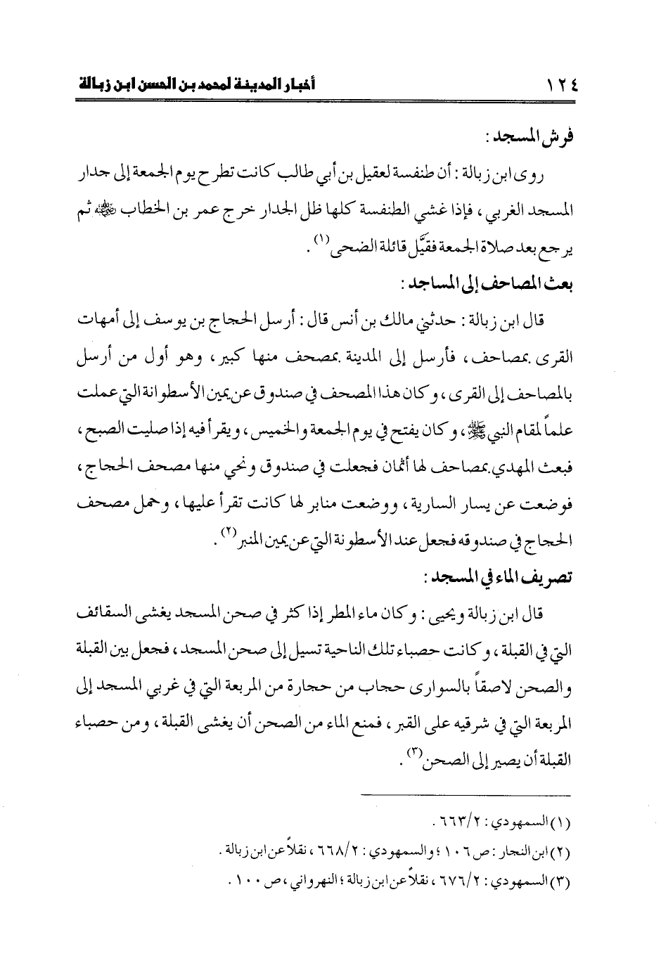 (3) السمهودي: 2/ 676، نقلاً عن ابن زبالة؛ النهرواني، ص 100.