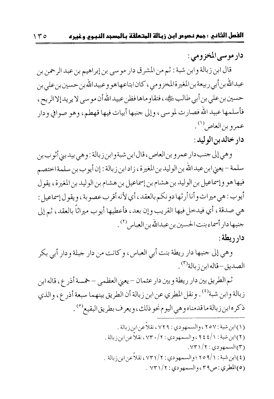 (4) ابن شبة: 1/ 259؛ والسمهودي: 2/ 731، نقلاً عن ابن زبالة.
