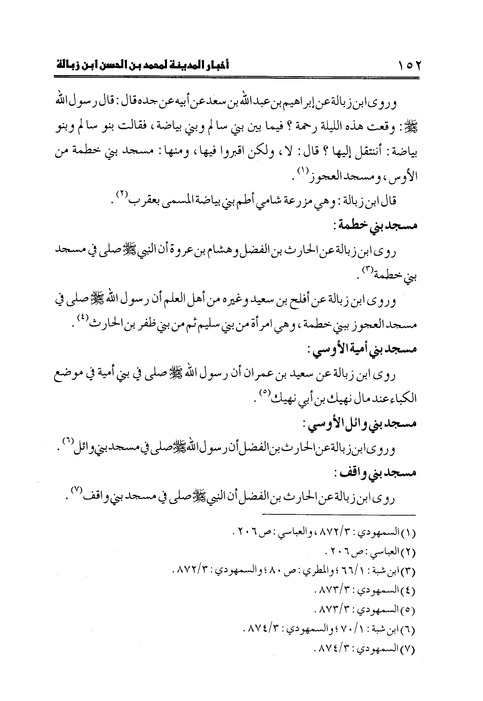 (6) ابن شبة: 1/ 70؛ والسمهودي: 3/ 874.