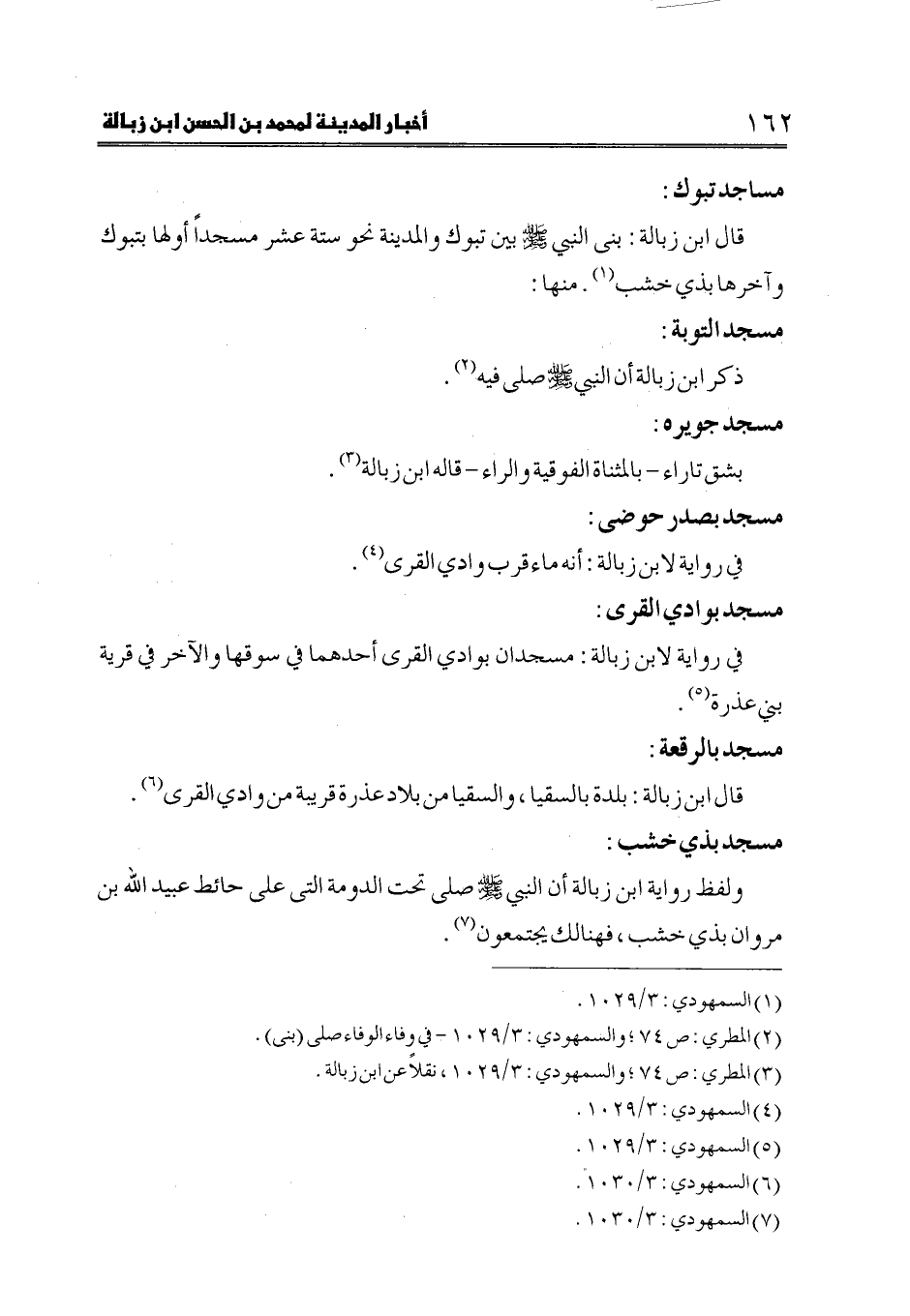 (3) المطري: ص 74؛ والسمهودي: 3/ 1029، نقلاً عن ابن زبالة.