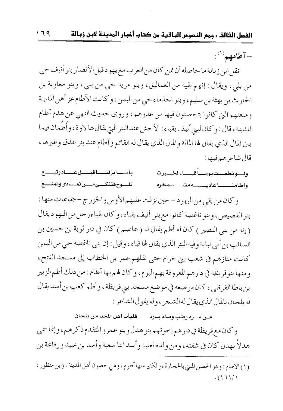 (1) الآطام: وهو الحصن المبني بالحجارة، والكثير منها أطوم، وهي حصون أهل المدينة. (ابن منظور: 1/ 161).