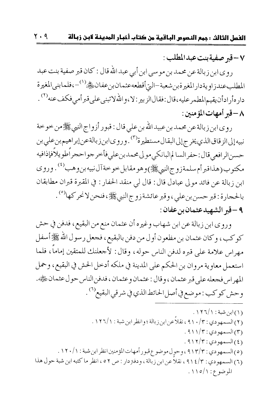 (5) السمهودي: 3/ 913، وحول موضوع قبور أمهات المؤمنين انظر ابن شبة: 1/ 120.