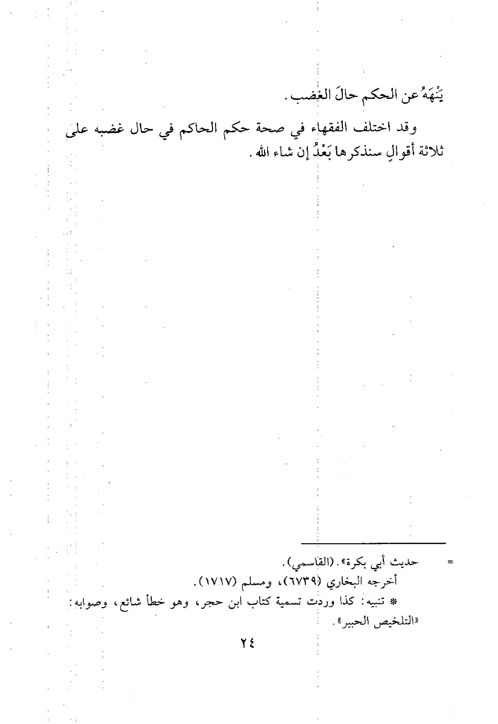 وقد اختلف الفقهاء في صحة حكم الحاكم في حال غضيه على ثلاثة أقوالٍ سنذكرها بَعْدُ إن شاء الله.