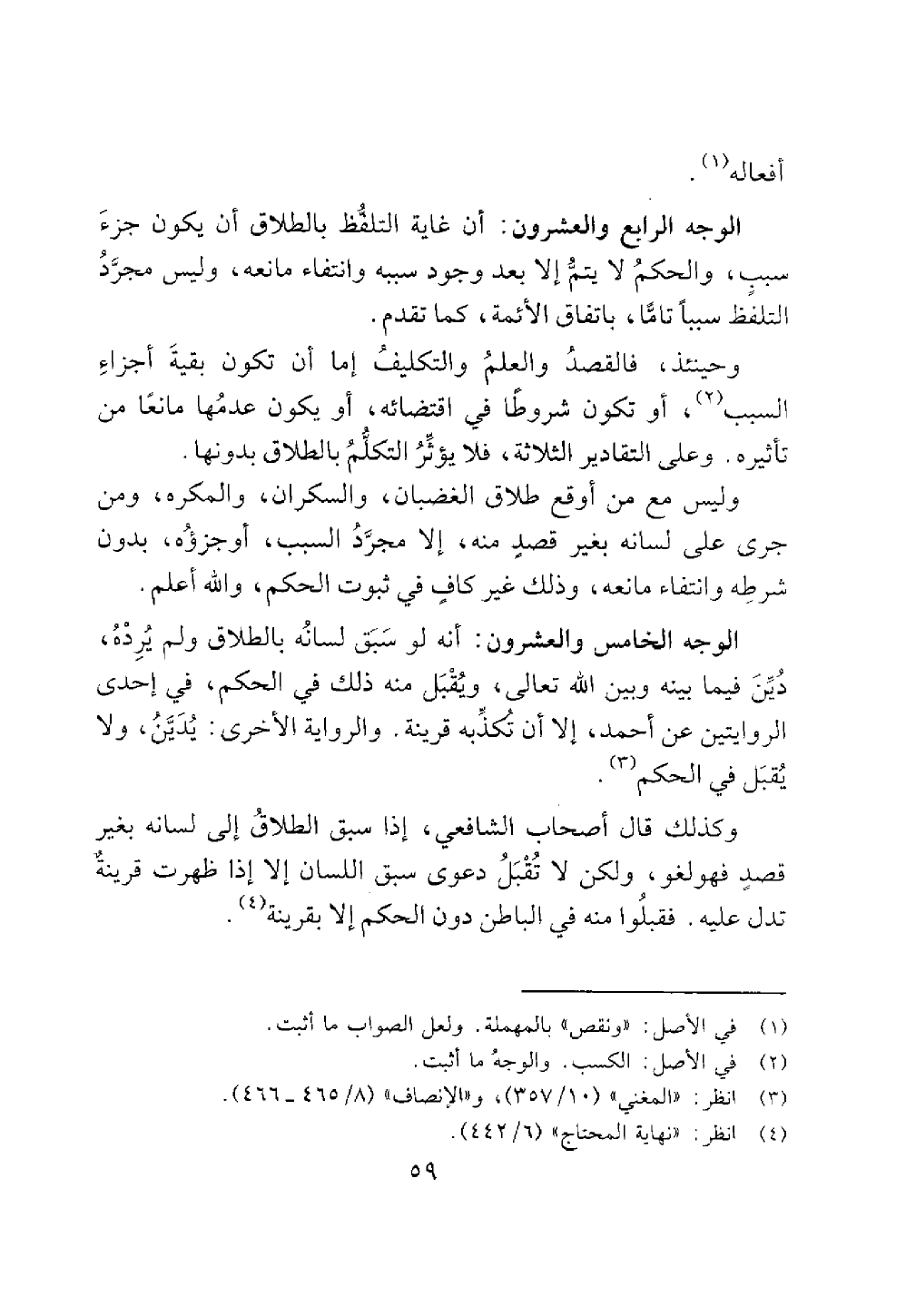 الوجه الرابع والعشرون: أن غاية التلفُّظ بالطلاق أن يكون جزءَ سببٍ، والحكمُ لا يتمُّ إلا بعد وجود سببه وانتفاء مانعه، وليس مجرَّدُ التلفظ سببًا تامًّا، باتفاق الأئمة، كما تقدم.