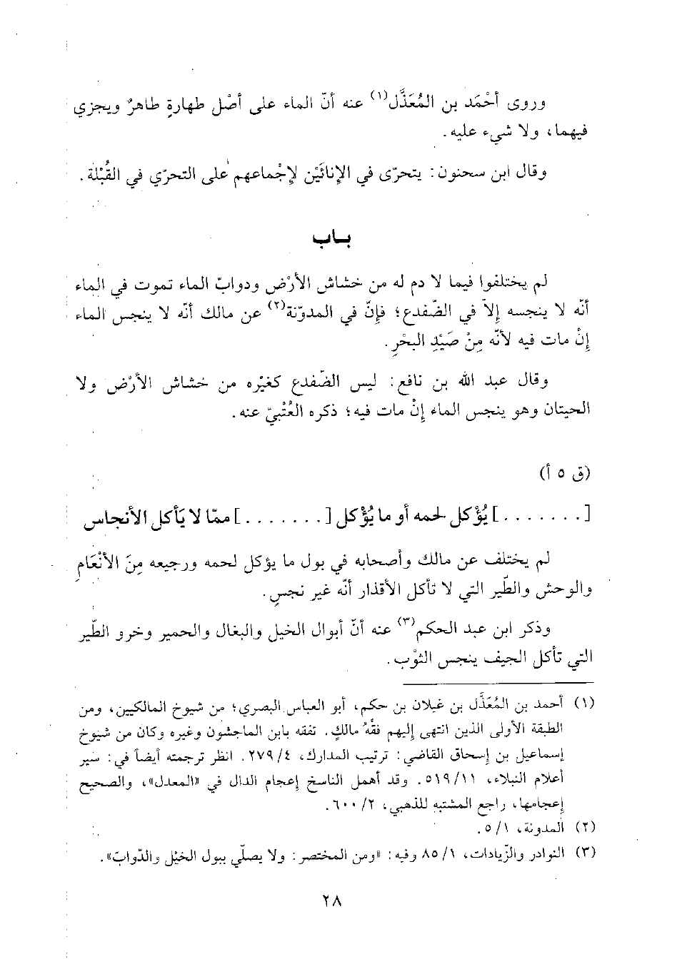 (¬3) النوادر والزيادات، 1/ 85 وفيه: ((ومن المختصر: ولا يصلي ببول الخيل والدواب)).