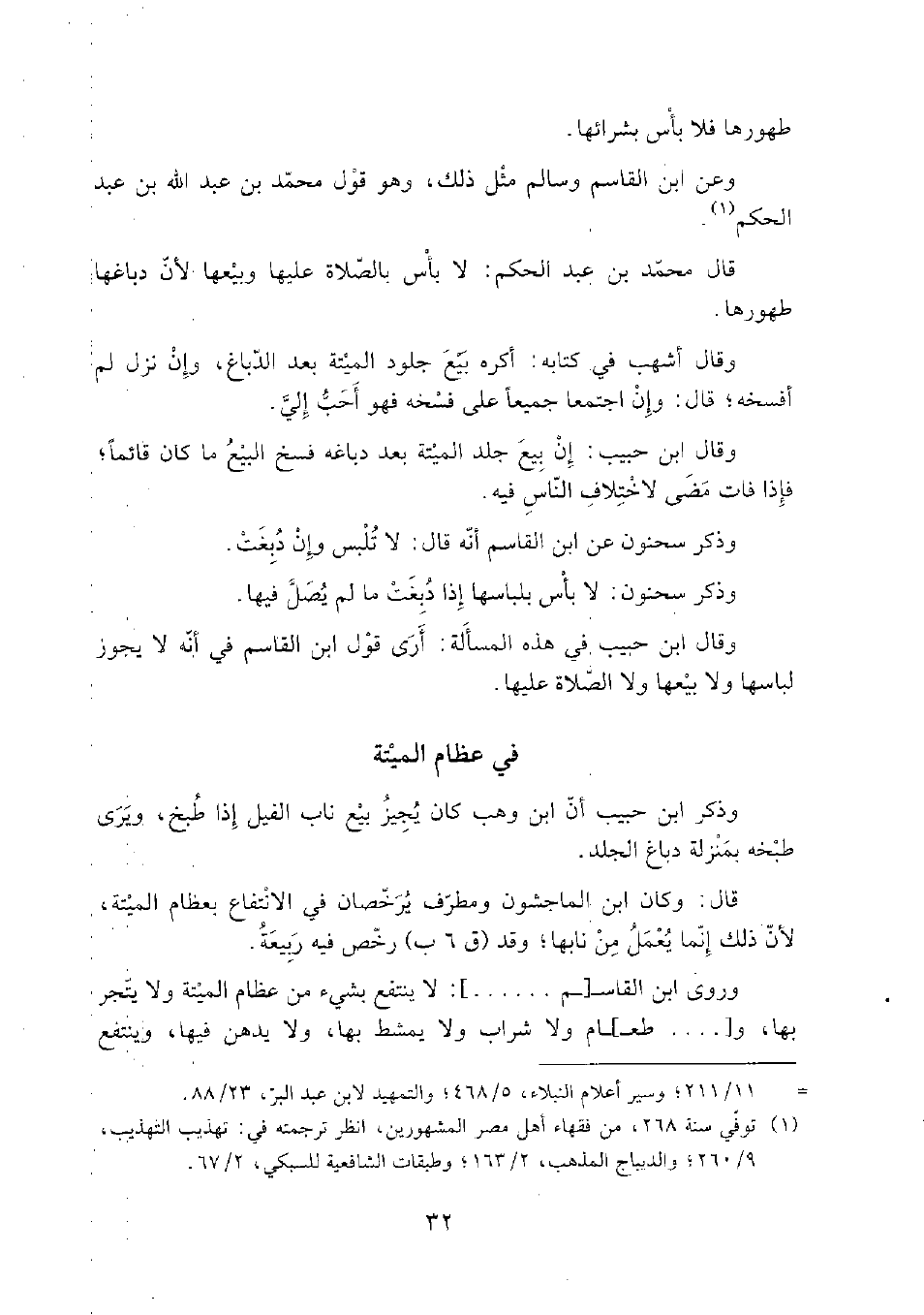 قال: وكان ابن الماجشون ومطرف يرخصان في الانتفاع بعظام الميتة، لأن ذلك إنما يعمل من نابها؛ وقد (ق 6 ب) رخص فيه ربيعة.
