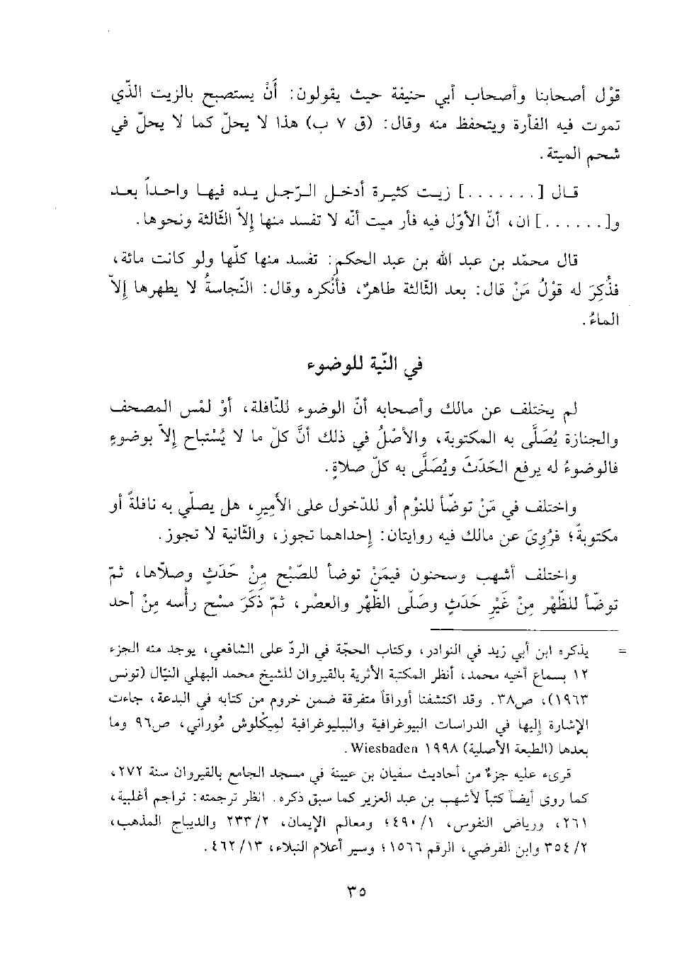 قول أصحابنا وأصحاب أبي حنيفة حيث يقولون: أن يستصبح بالزيت الذي تموت فيه الفأرة ويتحفظ منه وقال: (ق 7 ب) هذا لا يحل كما لا يحل في شحم الميتة.