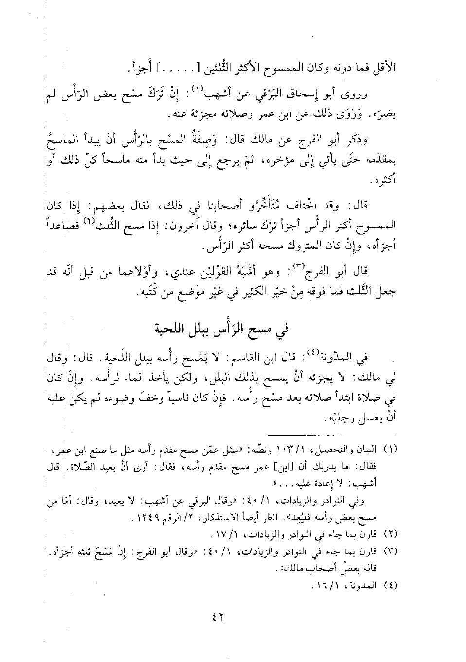 (¬3) قارن بما جاء في النوادر والزيادات، 1/ 40: ((وقال أبو الفرج: إن مسح ثلثه أجزأه. قاله بعض أصحاب مالك)).