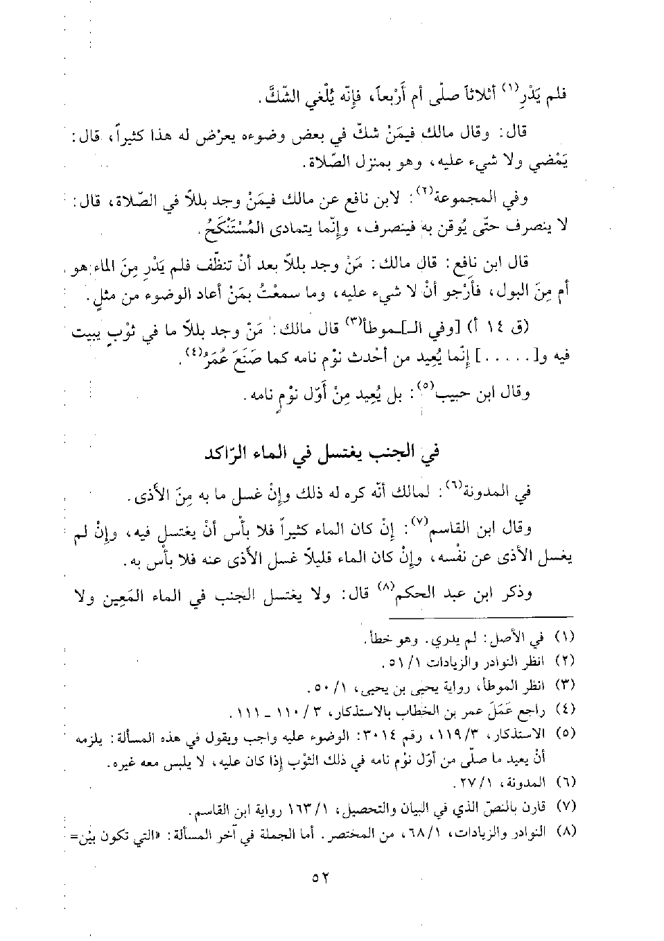 (¬7) قارن بالنص الذي في البيان والتحصيل، 1/ 163 رواية ابن القاسم.