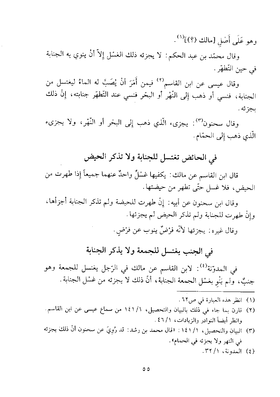 (¬2) قارن بما جاء في ذلك بالبيان والتحصيل، 1/ 141 من سماع عيسى عن ابن القاسم.