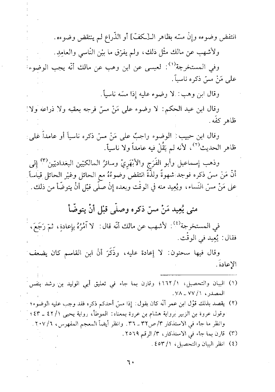 (¬1) البيان والتحصيل، 1/ 162؛ وقارن بما جاء في تعليق أبي الوليد بن رشد بنفس المصدر، 1/ 77 - 78.