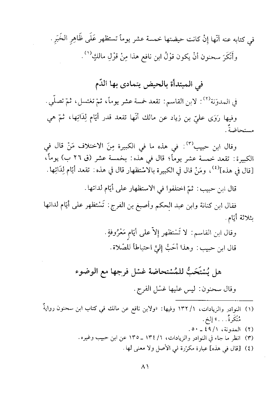 (¬3) انظر ما جاء في النوادر والزيادات، 1/ 134 - 135 عن ابن حبيب وغيره.