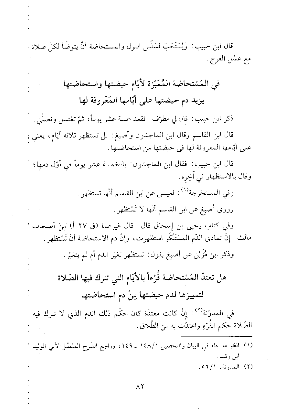 (¬1) انظر ما جاء في البيان والتحصيل 1/ 148 - 149، وراجع الشرح المفصل لأبي الوليد ابن رشد.