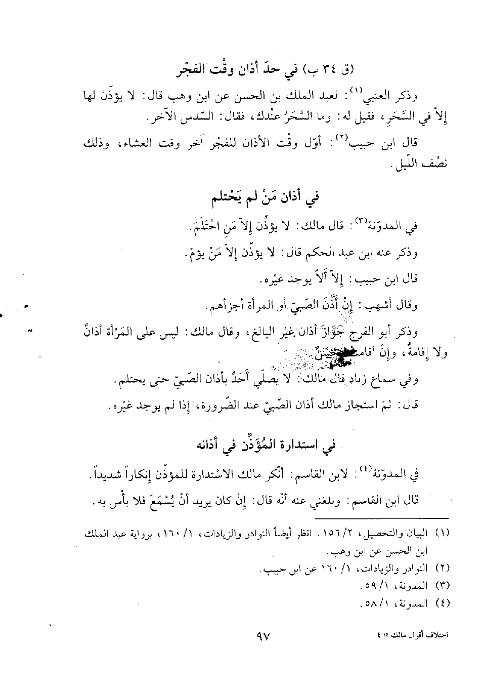 (¬1) البيان والتحصيل، 2/ 165. انظر أيضا النوادر والزيادات، 1/ 160، برواية عبد الملك ابن الحسن عن ابن وهب.