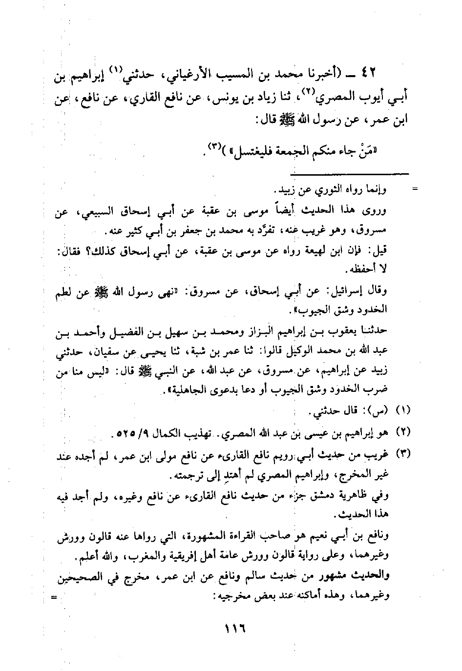 42 - (أخبرنا محمد بن المسيب الأرغياني، حدثني إبراهيم بن أبي أيوب المصري، ثنا زياد بن يونس، عن نافع القاري، عن نافع، عن ابن عمر، عَنْ رَسُولِ اللَّهِ صَلَّى اللَّهُ عَلَيْهِ وَسَلَّمَ قال: