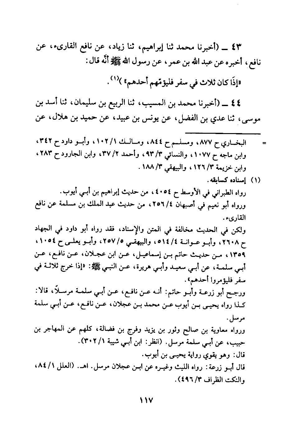 43 - (أخبرنا محمد ثنا إبراهيم، ثنا زياد، عن نافع القارئ، عن نافع، أخبره عن عبد الله بن عمر، عَنْ رَسُولِ اللَّهِ صَلَّى اللَّهُ عَلَيْهِ وَسَلَّمَ أنه قال: