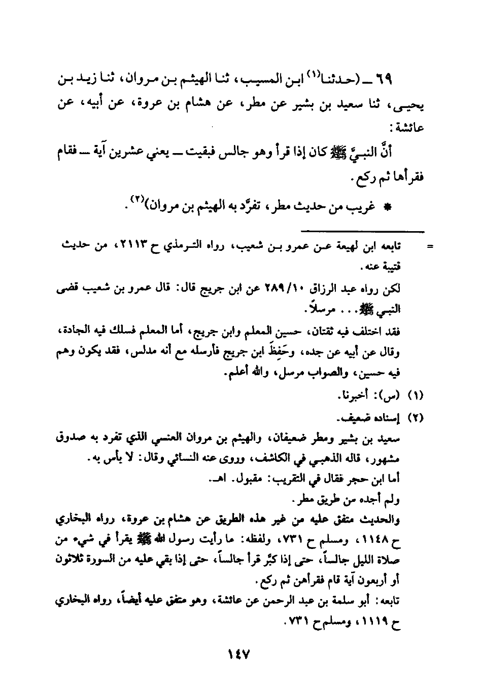 69 - (حدثنا ابن المسيب، ثنا الهيثم بن مروان، ثنا زيد بن يحيى، ثنا سعيد بن بشير عن مطر، عَنْ هِشَامِ بْنِ عُرْوَةَ، عَنْ أَبِيهِ، عَنْ عَائِشَةَ: