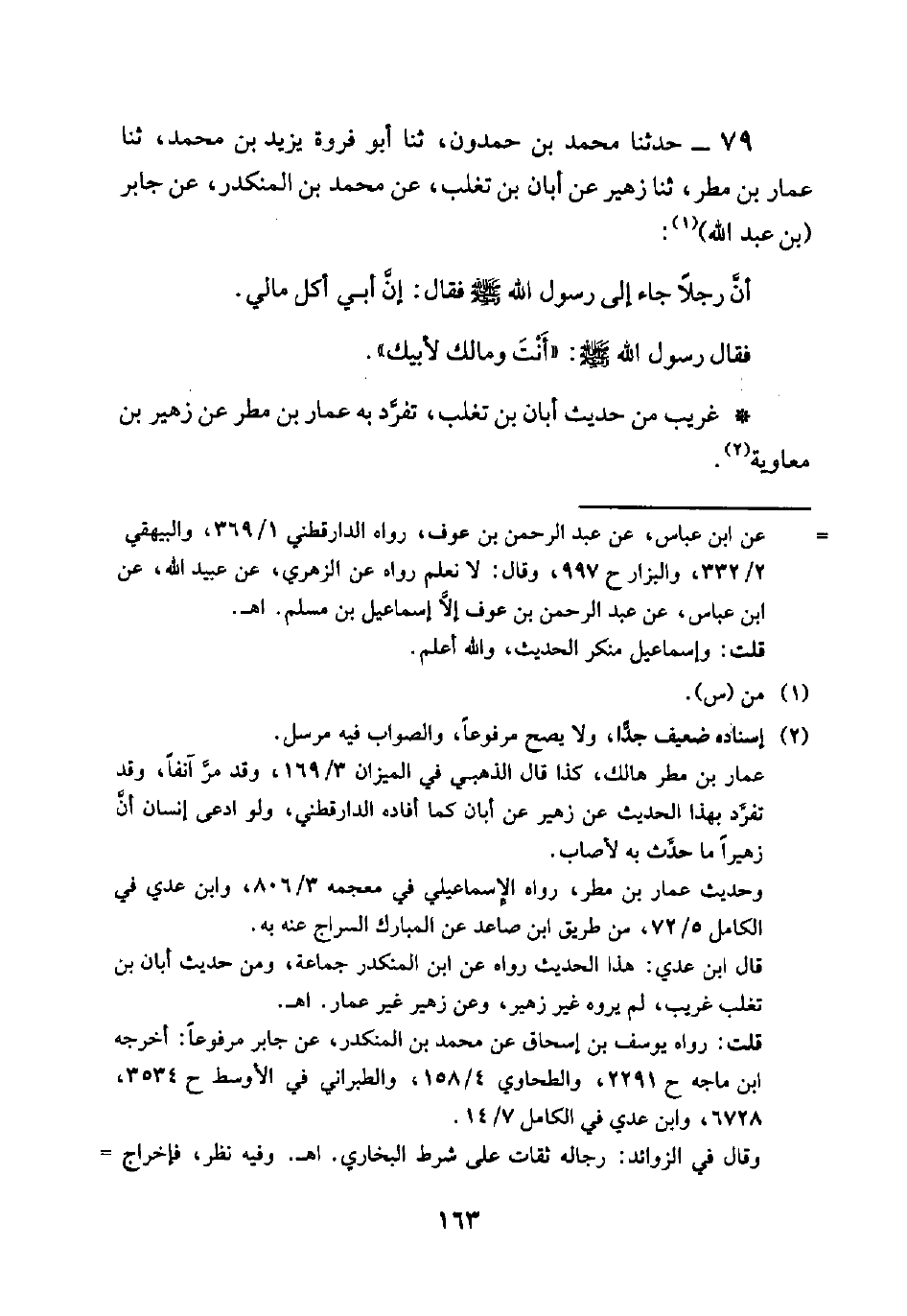 79 - حدثنا محمد بن حمدون، ثنا أبو فروة يزيد بن محمد، ثنا عمار بن مطر، ثنا زهير عن أبان بن تغلب، عن محمد بن المنكدر، عن جابر (بن عبد الله):