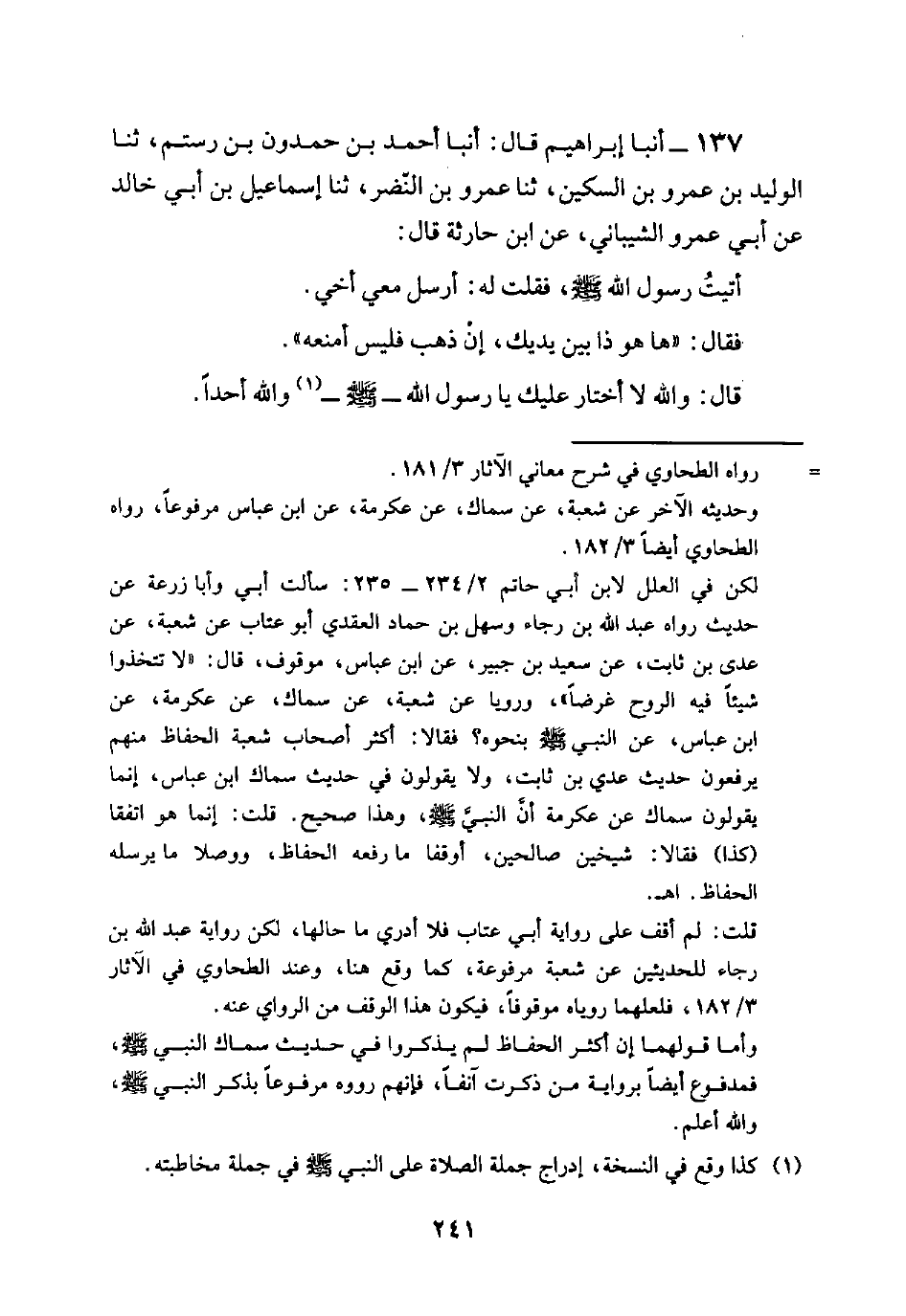 137 - أنبأ إبراهيم قال: أنبأ أحمد بن حمدون بن رستم، ثنا الوليد بن عمرو بن السكين، ثنا عمرو بن النضر، ثنا إسماعيل بن أبي خالد عن أبي عمرو الشيباني، عن ابن حارثة قال: