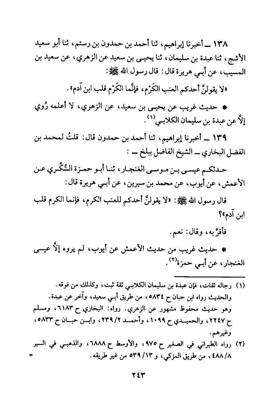 138 - أخبرنا إبراهيم، ثنا أحمد بن حمدون بن رستم، ثنا أبو سعيد الأشج، ثنا عبدة بن سليمان، ثنا يحيى بن سعيد عن الزهري، عن سعيد بن المسيب، عَنْ أَبِي هُرَيْرَةَ قَالَ: قَالَ رَسُولُ اللَّهِ صلى الله عليه وسلم: