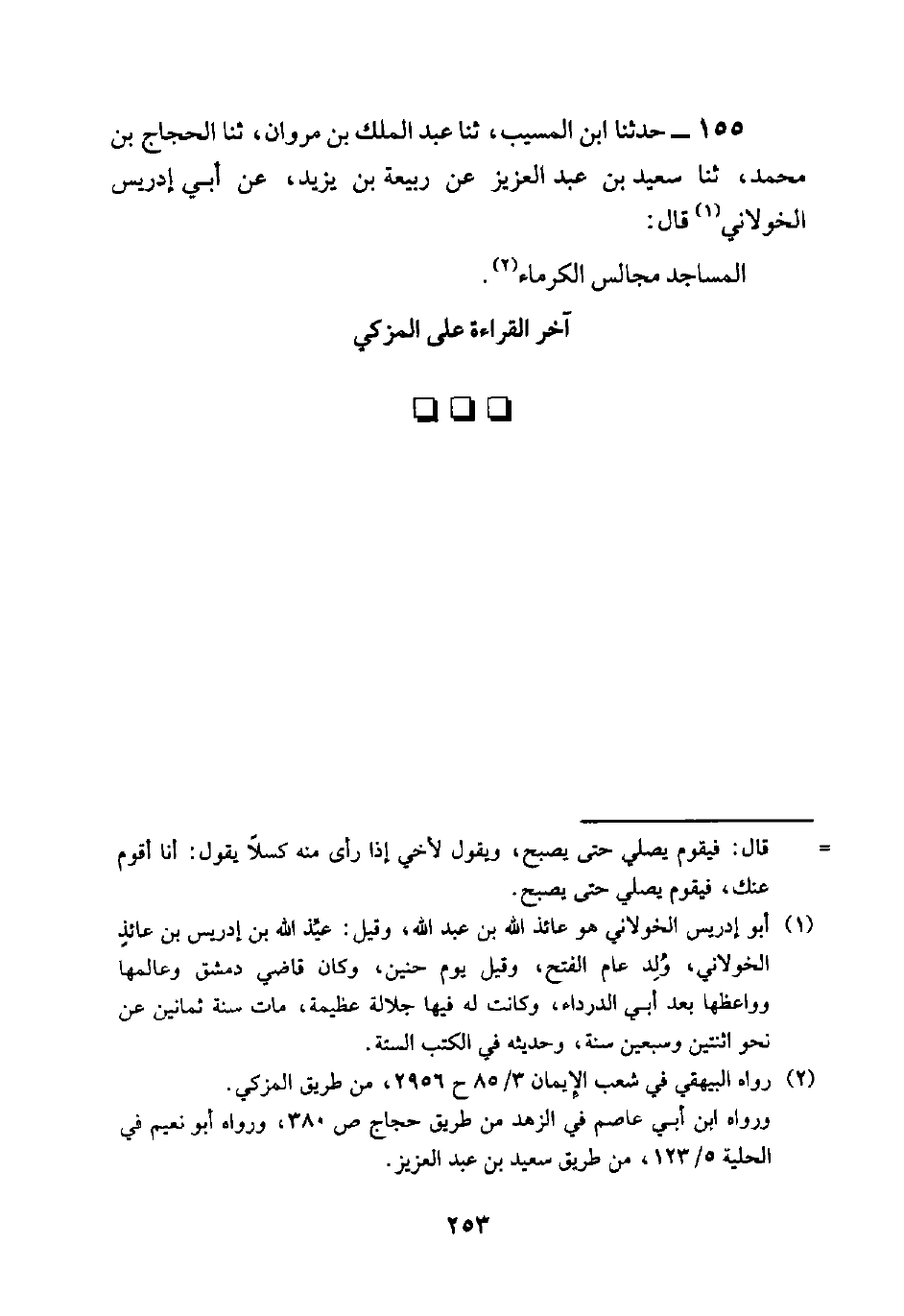 155 - حدثنا ابن المسيب، ثنا عبد الملك بن مروان، ثنا الحجاج بن محمد، ثنا سعيد بن عبد العزيز عن ربيعة بن يزيد، عن أبي إدريس الخولاني قال:
