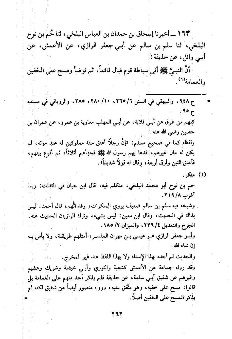 163 - أخبرنا إسحاق بن حمدان بن العباس البلخي، ثنا حم بن نوح البلخي، ثنا سلم بْنُ سَالِمٍ عَنْ أَبِي جَعْفَرٍ الرَّازِيِّ، عَنِ الأَعْمَشِ، عَنْ أَبِي وَائِلٍ، عَنْ حُذَيْفَةَ: