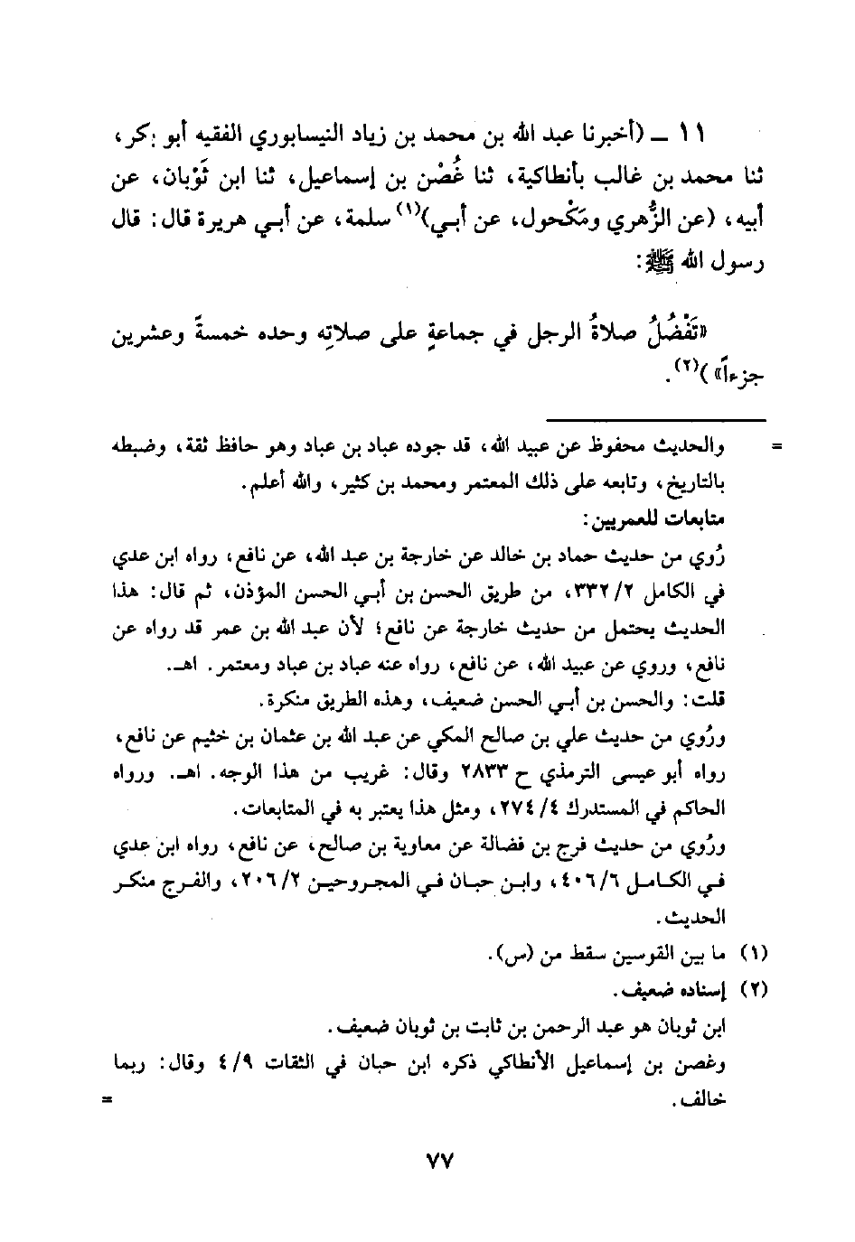 ((تفضل صلاة الرجل في جماعة على صلاته وحده خمسةً وعشرين جزءاً)).