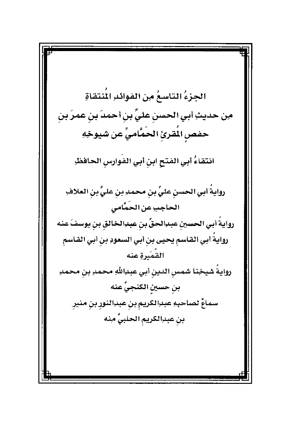 روايةُ أبي الحسنِ عليِّ بنِ محمدِ بنِ عليِّ بنِ العلافِ الحاجبِ عن الحَمَّامي