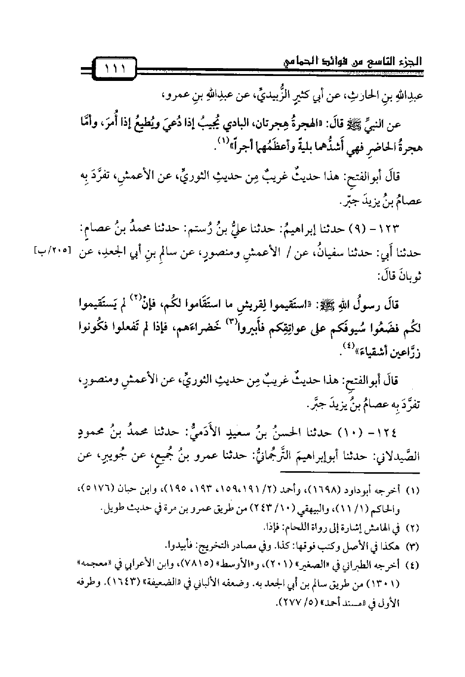123 - (9) حدثنا إبراهيمُ: حدثنا عليُّ بنُ رُستم: حدثنا محمدُ بنُ عصامٍ: حدثنا أَبي: حدثنا سفيانُ، عن / الأعمشِ ومنصورٍ، عن سالمِ بنِ أبي الجعدِ، عن ثوبانَ قالَ: