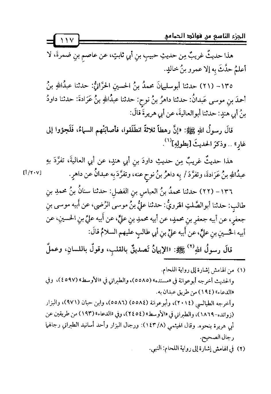 135 - (21) حدثنا أبوسليمانَ محمدُ بنُ الحسينِ الحرَّانيُّ: حدثنا عبدُاللهِ بنُ أحمدَ بنِ موسى عَبدانُ: حدثنا داهرُ بنُ نوحٍ: حدثنا عبدُاللهِ بنُ عَرَادةَ: حدثنا داودُ بنُ أبي هندٍ: حدثنا أبوالعاليةَ، عن أبي هريرةَ قالَ: