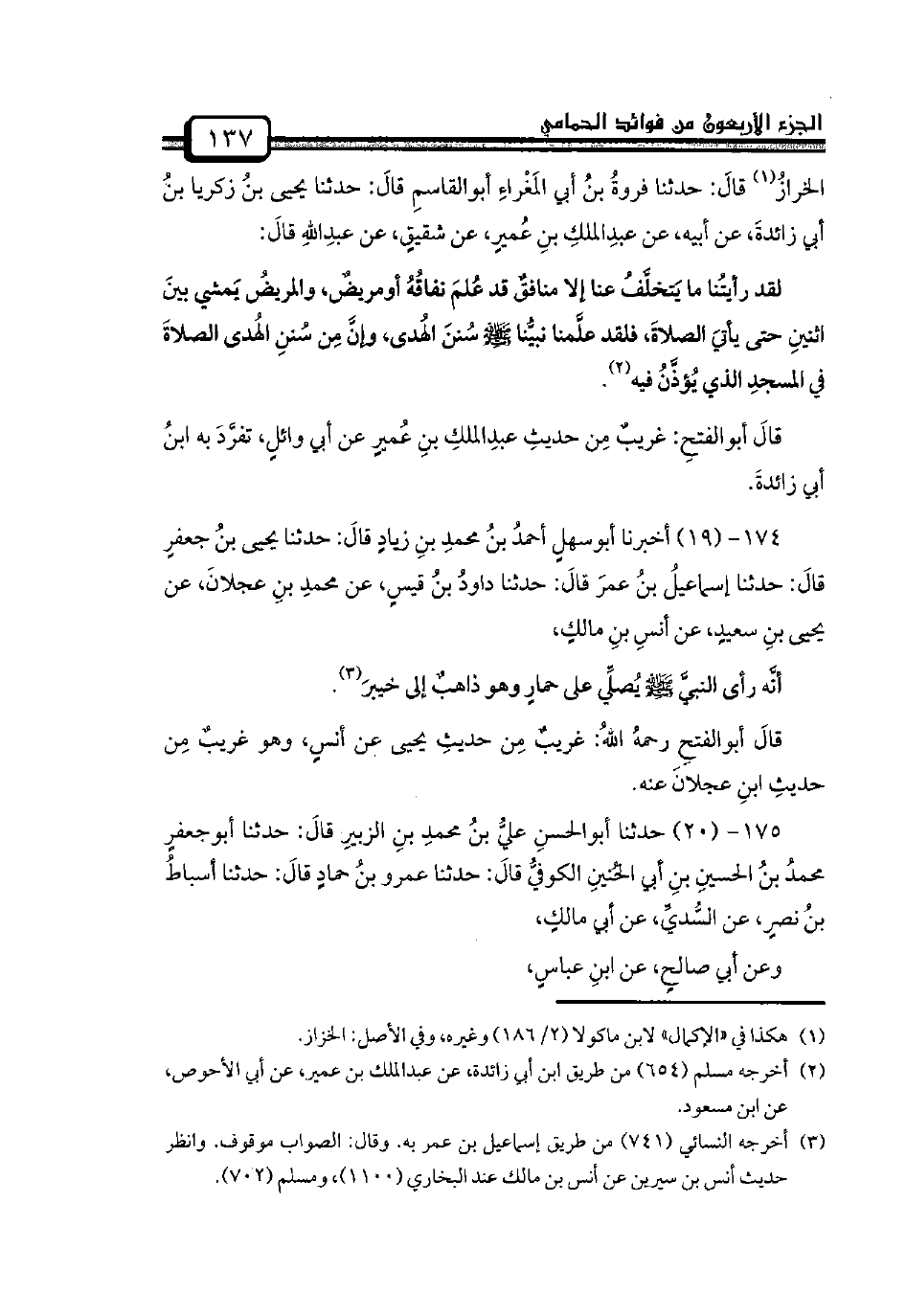 175 - (20) حدثنا أبوالحسنِ عليُّ بنُ محمدِ بنِ الزبيرِ قالَ: حدثنا أبوجعفرٍ محمدُ بنُ الحسينِ بنِ أبي الحُنينِ الكوفيُّ قالَ: حدثنا عمرو بنُ حمادٍ قالَ: حدثنا أسباطُ بنُ نصرٍ، عن السُّديِّ، عن أبي مالكٍ،