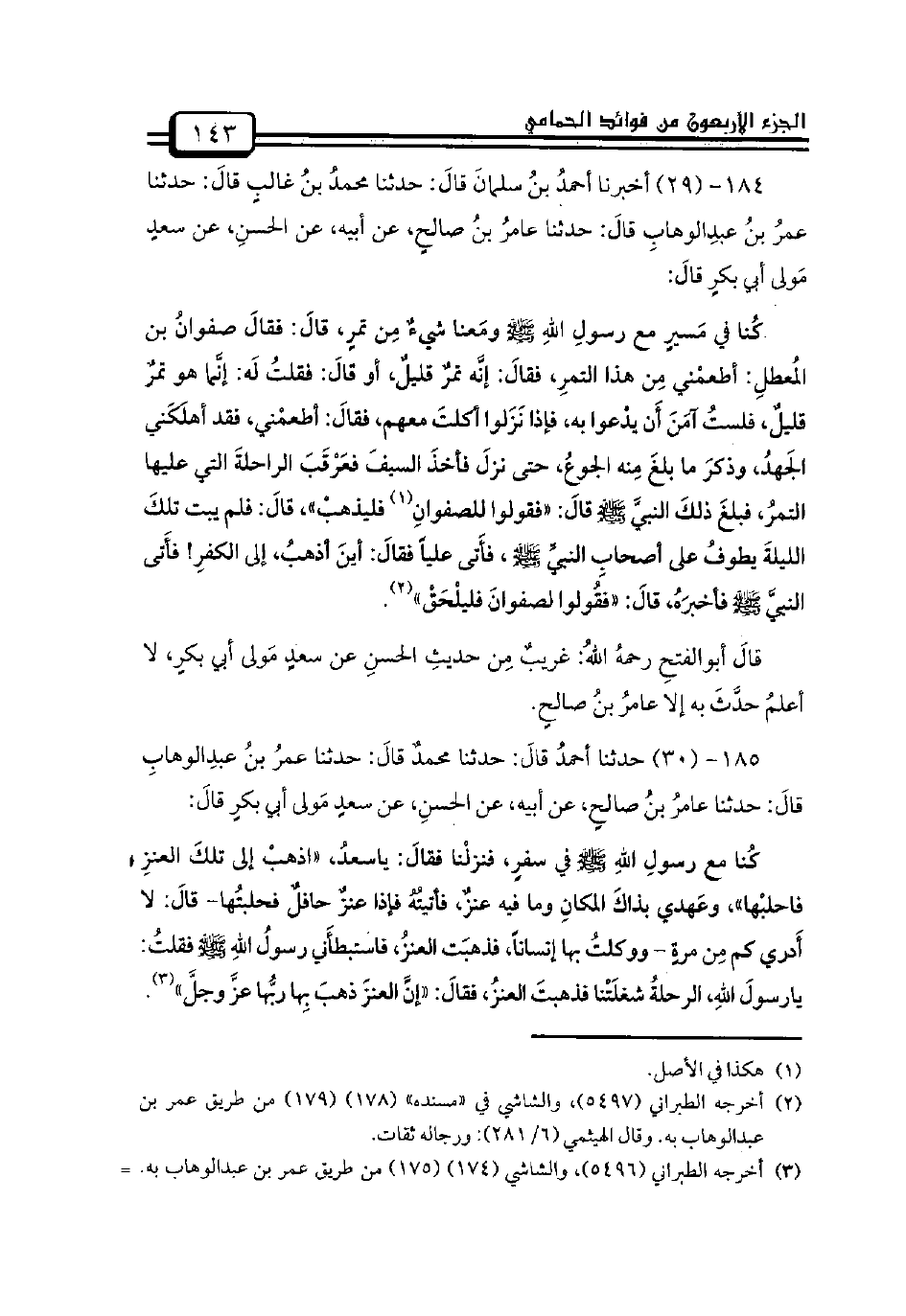 -[144]- / قالَ أبوالفتحِ: هذا حديثٌ غريبٌ مِن حديثِ الحسنِ عن سعدٍ مَولى أبي بكرٍ، لا أعلمُ حدَّثَ به إلا عامرُ بنُ صالحٍ.