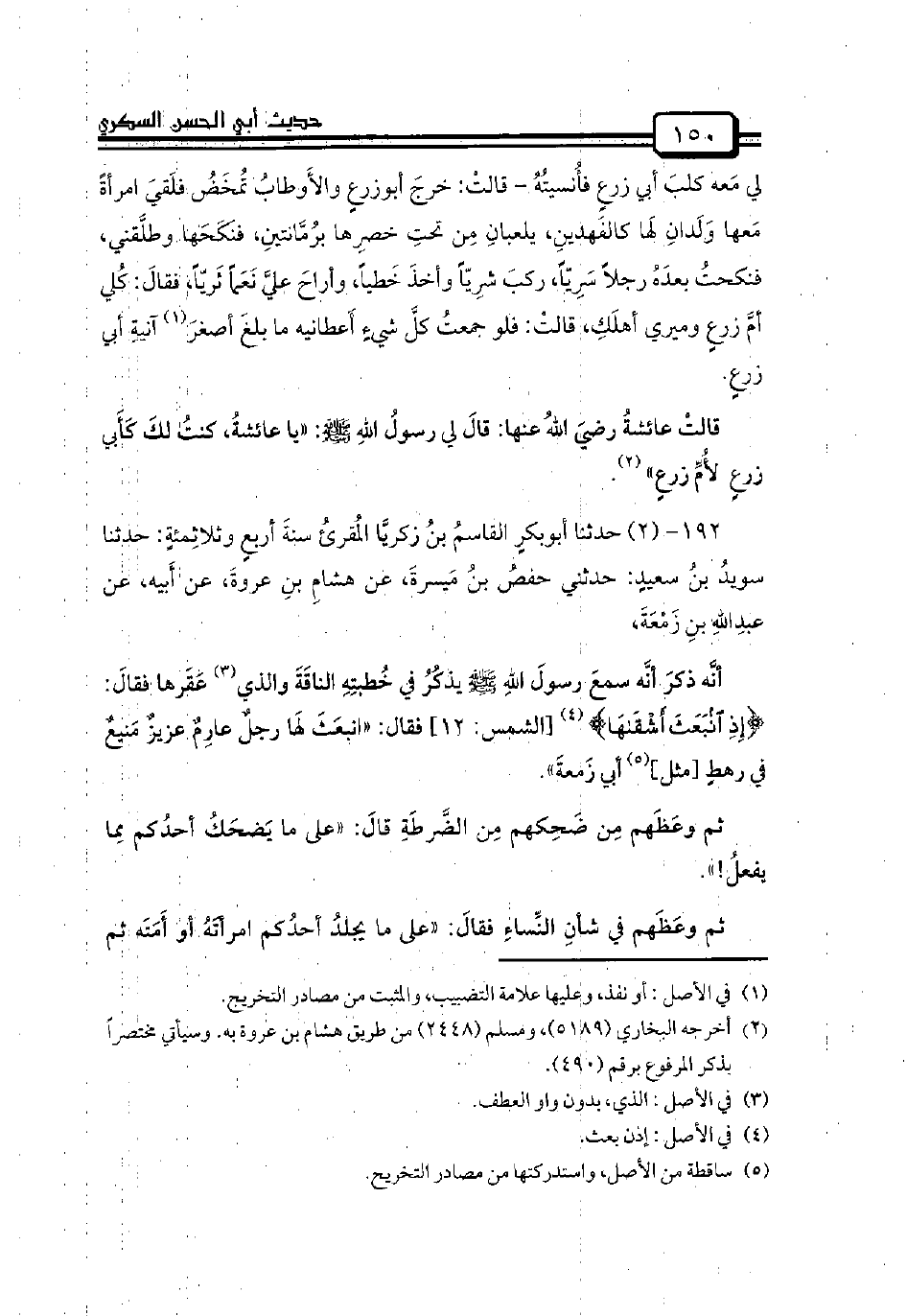 192 - (2) حدثنا أبوبكرٍ القاسمُ بنُ زكريَّا المُقرئُ سنةَ أربعٍ وثلاثِمئةٍ: حدثنا سويدُ بنُ سعيدٍ: حدثني حفصُ بنُ مَيسرةَ، عن هشامِ بنِ عروةَ، عن أَبيه، عن عبدِاللهِ بنِ زَمْعَةَ،