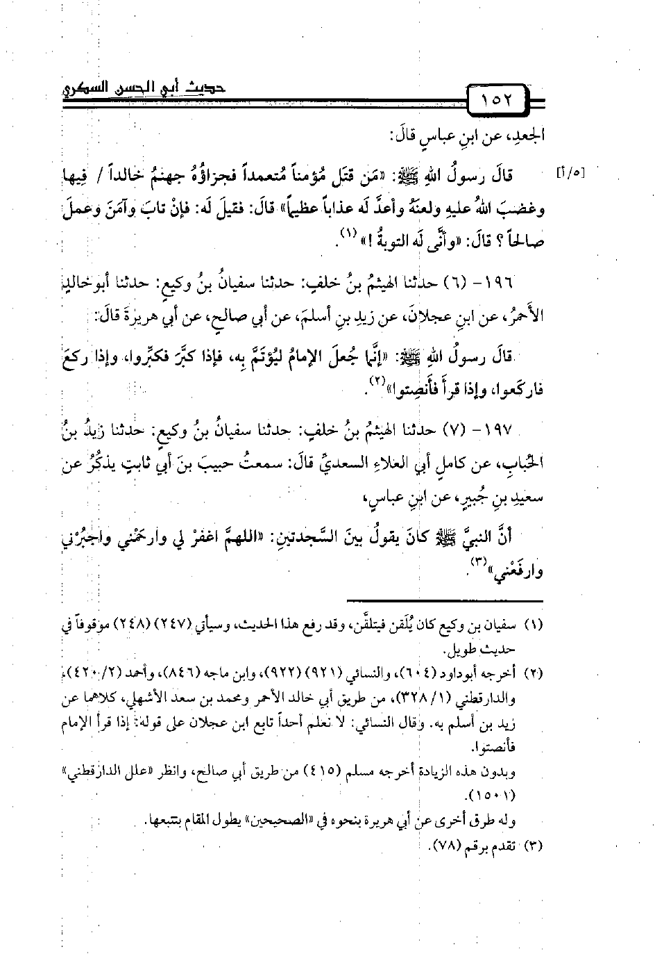 197 - (7) حدثنا الهيثمُ بنُ خلفٍ: حدثنا سفيانُ بنُ وكيعٍ: حدثنا زيدُ بنُ الحُبابِ، عن كاملٍ أبي العلاءِ السعديِّ قالَ: سمعتُ حبيبَ بنَ أبي ثابتٍ يذكُرُ عن سعيدِ بنِ جُبيرٍ، عن ابنِ عباسٍ،