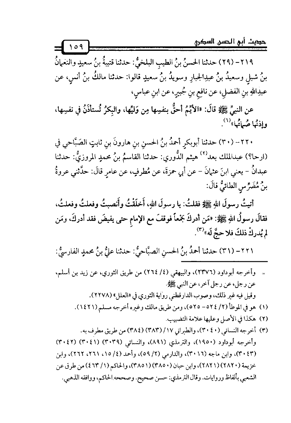 220 - (30) حدثنا أبوبكرٍ أحمدُ بنُ الحسنِ بنِ هارونَ بنِ ثابتٍ الصَبَّاحي في (ارحا؟) عبدالملك بعد هيثم الدُّوري: حدثنا القاسمُ بنُ محمدٍ المروزيُّ: حدثنا عبدانُ - يعني ابنَ عثمانَ - عن أبي حمزةَ، عن مُطرفٍ، عن عامرٍ قالَ: حدَّثني عروةُ بنُ مُضَرِّسٍ الطائيُّ قالَ: