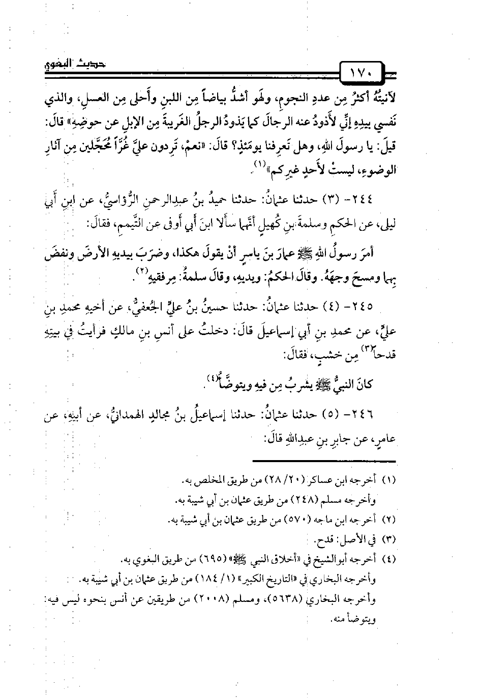 246 - (5) حدثنا عثمانُ: حدثنا إسماعيلُ بنُ مجالدٍ الهمدانيُّ، عن أبيهِ، عن عامرٍ، عن جابرِ بنِ عبدِاللهِ قالَ: