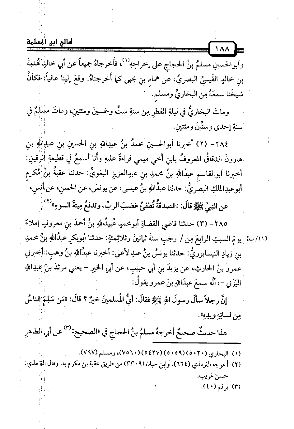 هذا حديثٌ صحيحٌ أخرجهُ مسلمُ بنُ الحجاجِ في «الصحيح» عن أبي الطاهرِ -[189]- أحمدِ بنِ عمرو بنِ السرحِ المصريِّ، عن عبدِاللهِ بنِ وهبٍ كما أَخرجناهُ، وقعَ إلينا عالياً.