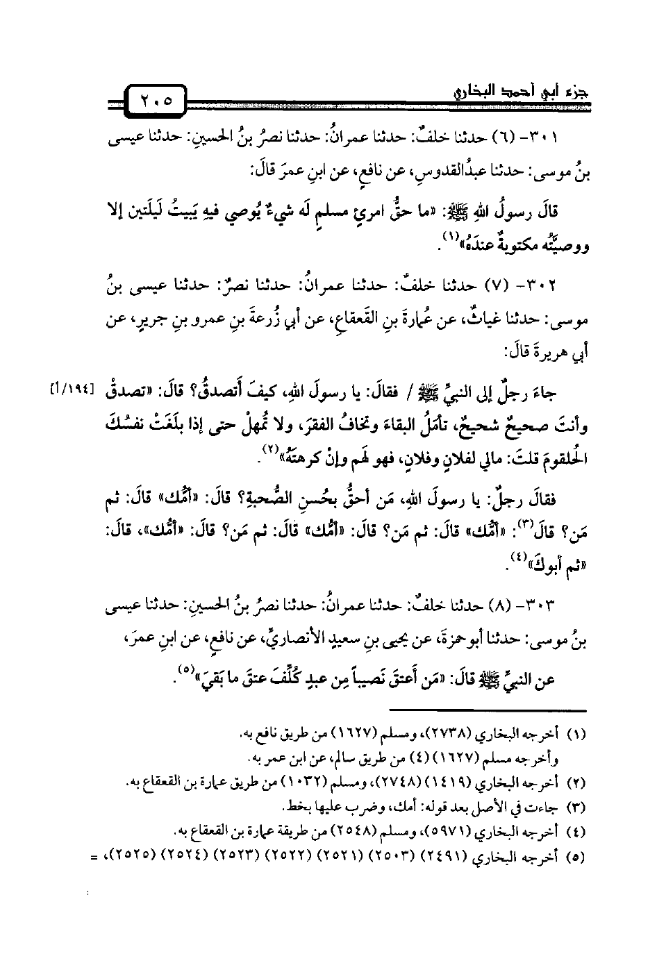 304 - (9) حدثنا خلفٌ: حدثنا عمرانُ: حدثنا نصرُ بنُ الحسينِ: حدثنا عيسى: حدثنا عبدُاللهِ بنُ كَيسانَ، عن عمرو بنِ دينارٍ، عن جابرِ بنِ عبدِاللهِ،