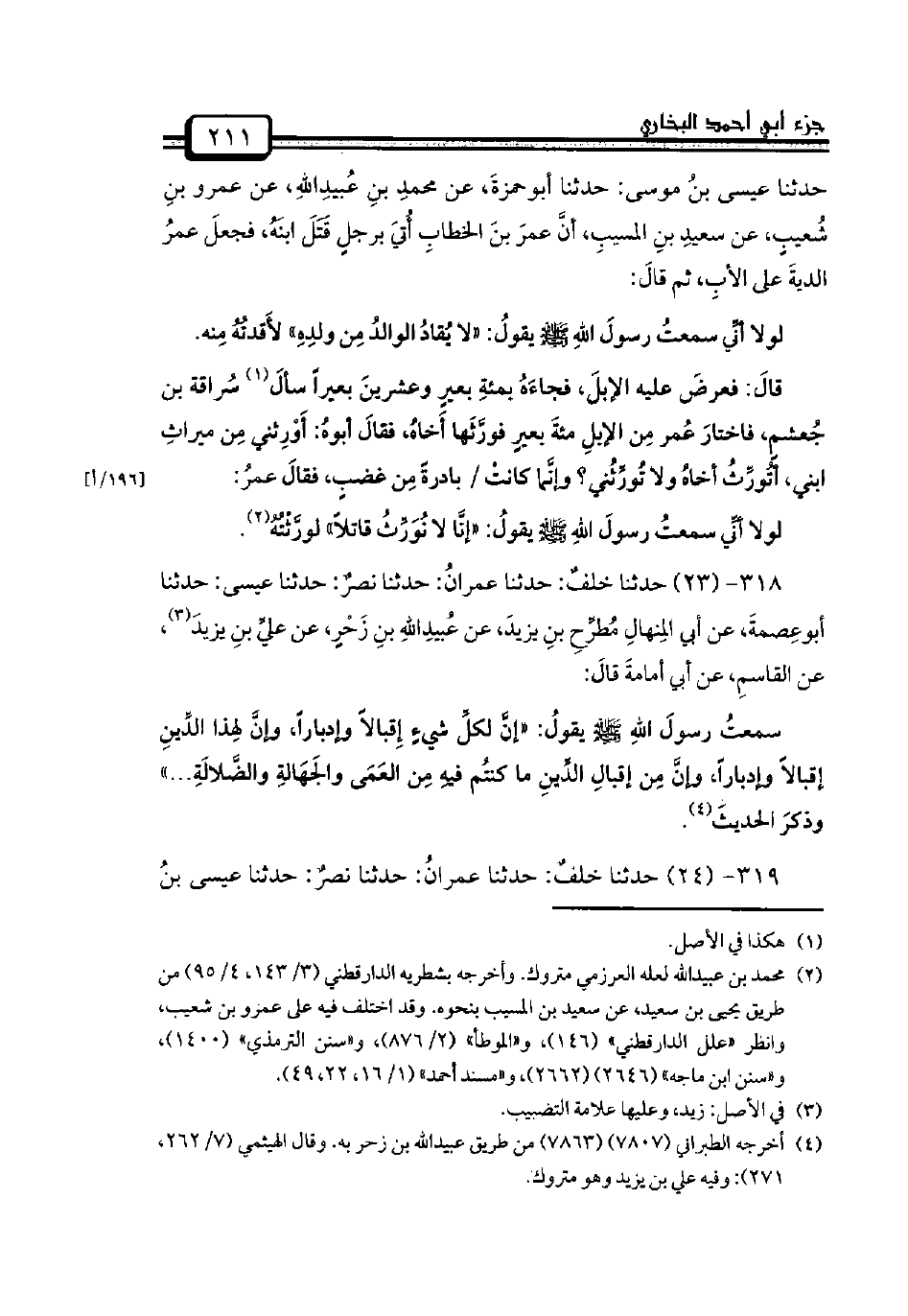 320 - (25) حدثنا خلفٌ: حدثنا عمرانُ: حدثنا نصرٌ: حدثنا عيسى: حدثنا أبومُقاتلٍ، عن إسماعيلَ، عن عامرٍ الشَّعبيِّ، عن ابنِ مسعودٍ،