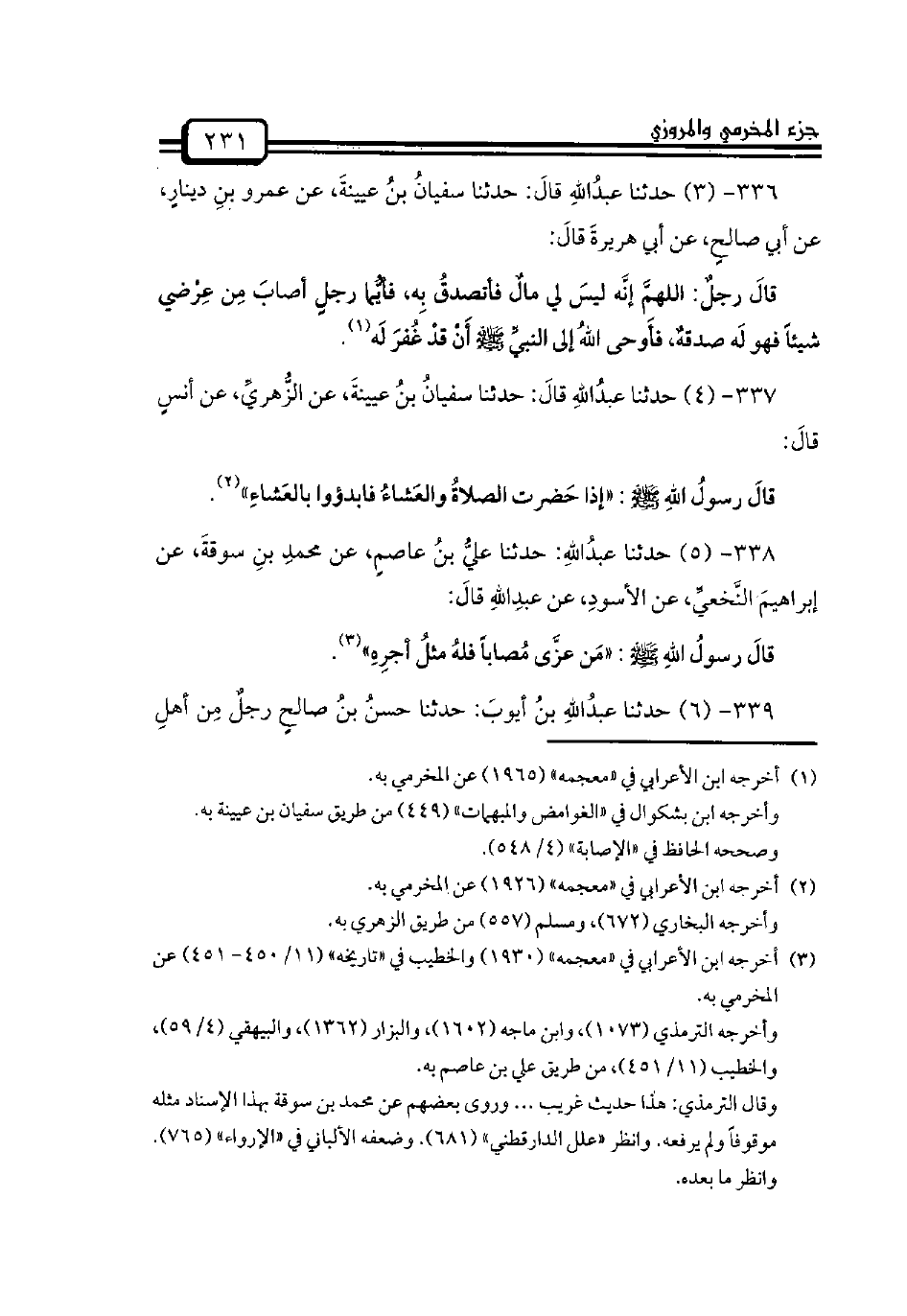 336 - (3) حدثنا عبدُاللهِ قالَ: حدثنا سفيانُ بنُ عيينةَ، عن عمرو بنِ دينارٍ، عن أبي صالحٍ، عن أبي هريرةَ قالَ: