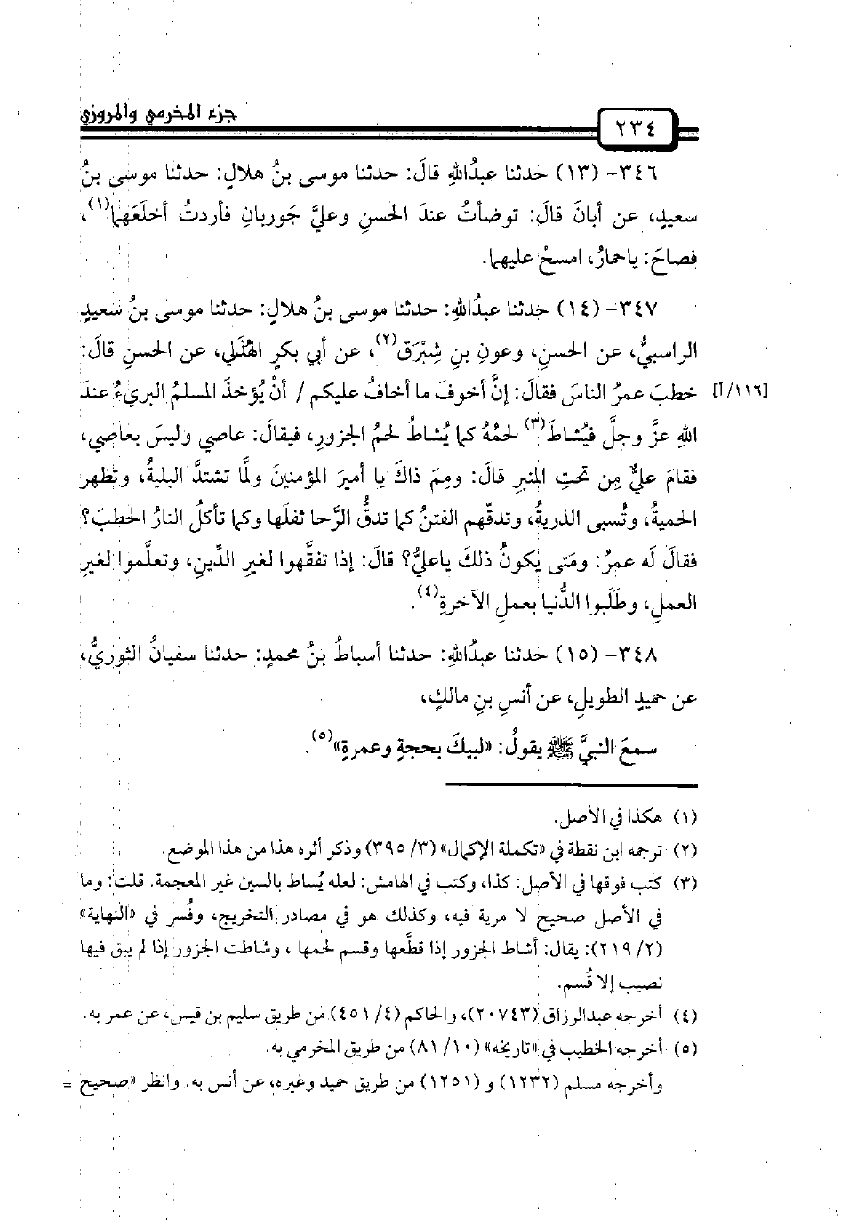 346 - (13) حدثنا عبدُاللهِ قالَ: حدثنا موسى بنُ هلالٍ: حدثنا موسى بنُ سعيدٍ، عن أبانَ قالَ: توضأتُ عندَ الحسنِ وعليَّ جَوربانِ فأردتُ أخلَعَهما، فصاحَ: ياحمارُ، امسحْ عليهما.