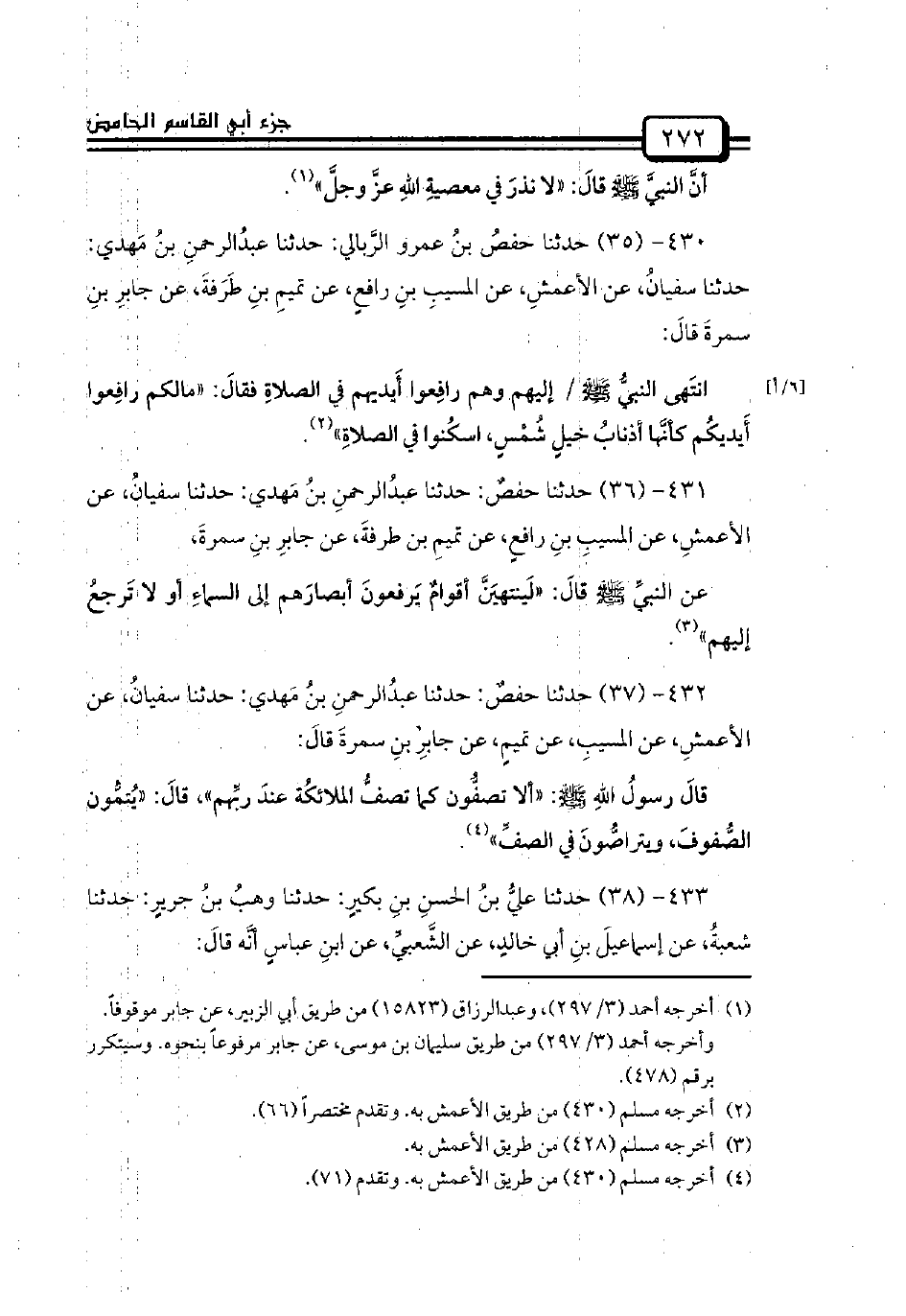 437 - (42) حدثنا محمدُ بنُ الحسنِ الأَصبهاني: / حدثنا بكرُ بنُ بكارٍ: حدثنا حمزةُ الزياتُ: حدثنا الأعمشُ: حدثنا شقيقٌ قالَ: قالَ عبدُاللهِ: