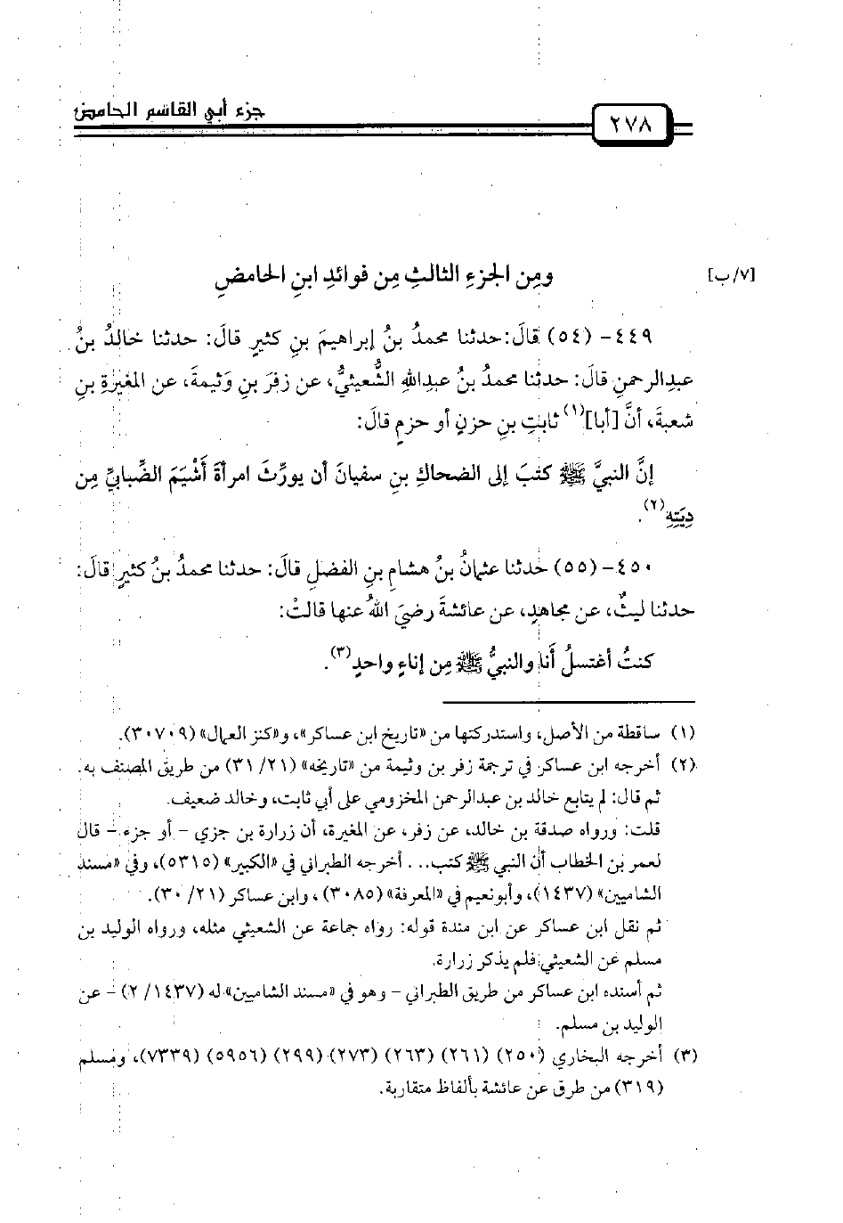 453 - (58) حدثنا محمدُ بنُ عبدك: حدثنا أبوبلالٍ: حدثنا أبوكُدينةَ البَجليُّ، عن حجاجِ بنِ أرطاةَ، عن أبي اليقظانِ عثمانَ بنِ عُميرٍ، عن زاذانَ، عن جريرِ بنِ عبدِاللهِ قالَ: